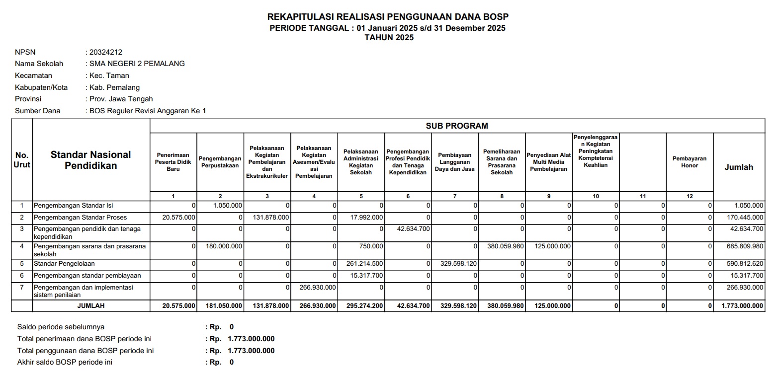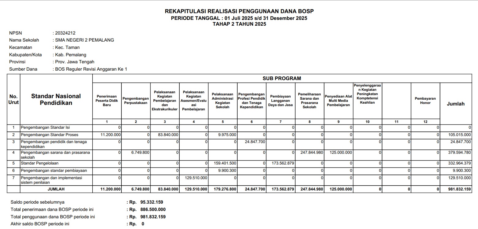 REKAPITULASI REALISASI PENGGUNAAN DANA BOSP
